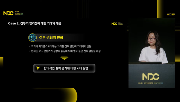 ‘메이플스토리’의 전투는 크게 사냥과 보스전으로 나뉜다. 관련해 긴 서비스 기간 이용자들이 행하는 전투와 기획자가 의도한 전투 구조에 있어 기대 시선 차이가 존재했으며, 개발진은 해당 간극을 좁히며 이용자들의 기대에 부응해 온 ‘메이플스토리’의 여정을 소개했다.
