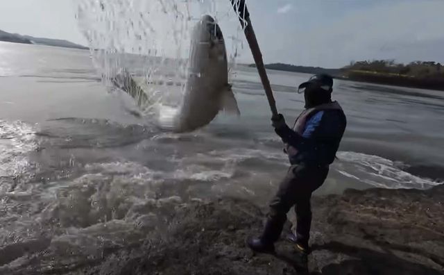 울돌목에서 뜰채로 숭어를 잡는 모습. / 'EBS 다큐' 유튜브