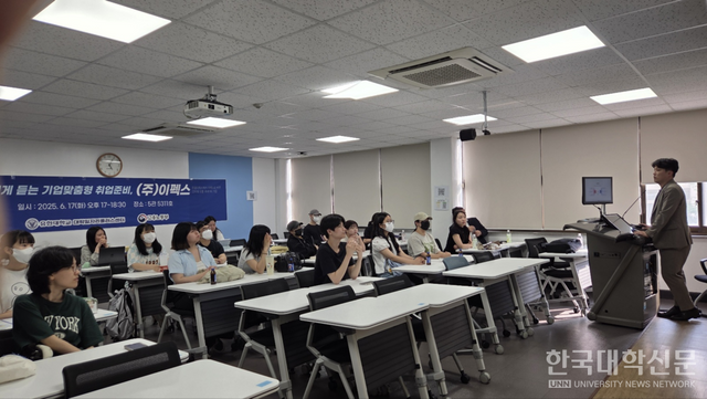 [한국대학신문 심정은 기자] 유한대학교 대학일자리플러스센터가 주관하는 ‘기업맞춤형 취업준비 프로그램’이 지난 17일 진행됐다. 이번 프로그램에는 종합 유통·인테리어 전문기업 ㈜이펙스 인사담당자가 직접 참여해 재학생 및 지역 청년들에게 실질적인 취업 노하우를 전수했다.