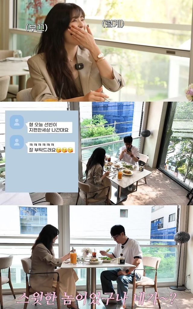 지석진이 그동안 몰랐던 이광수의 새로운 모습에 놀라자 이선빈은 "제가 떨린다고 그랬어서"라며 수줍은 웃음을 보였다.