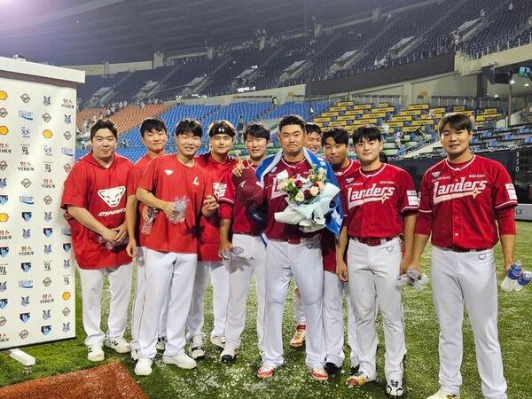 프로야구 SSG 랜더스의 베테랑 노경은이 KBO리그 역사에 자신의 이름을 새겼다. 후배들로부터 선수 인생 첫 축하의 물세례도 맞아 봤다.
