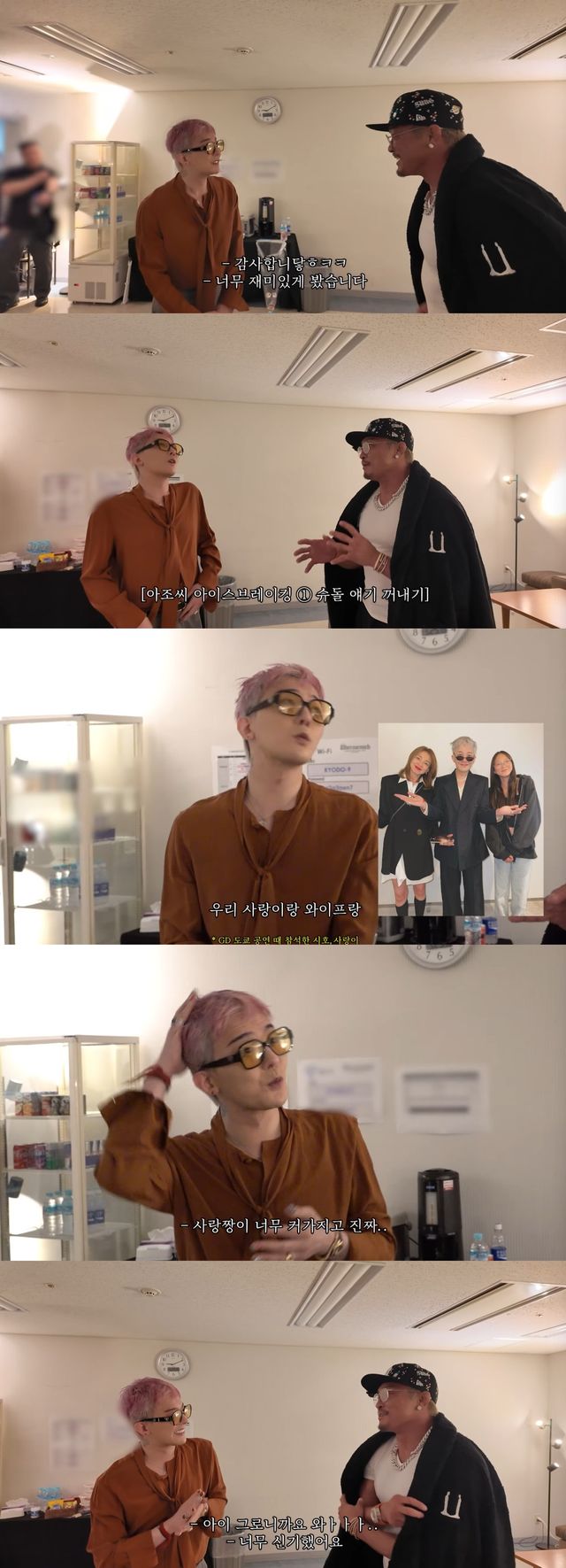 유튜브 섭외에 응한 지드래곤은 "제가 따라가겠다"는 추성훈에 빵 터지며 "제가 뭘 해야 될지 모르겠지만 나 아저씨 좋아한다. 무시 안한다"고 이야기했다.