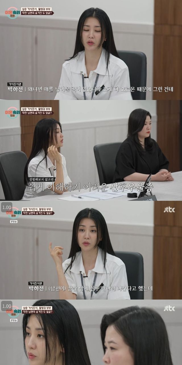 박하선은 "그때 남편이 잘해줘야 한다. 안 그러면 극복이 안 된다. 정신력으로 되는 게 아니다. 저도 있었다. 말을 해도 잘 모르니까 모르더라"라고 이야기했다.
