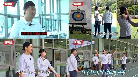 박성웅은 파리올림픽 양궁 3관왕에 빛나는 임시현 선수와 팀을 이뤄 대표팀 이우석·강채영 선수와 2대2 대결을 펼쳤다.