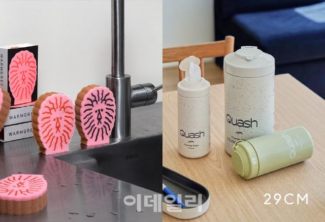 특히 심플한 외관으로 ‘꺼내두고 싶은 롤티슈’라는 별칭을 얻으며 입소문을 탔다. 실용적인 집들이 선물로도 주목받으면서 29선물하기에서도 인기를 얻고 있다. 라이프스타일 브랜드 ‘웜그레이테일’은 귀여운 일러스트 디자인의 수사자 수세미를 출시해 호응을 얻고 있다.