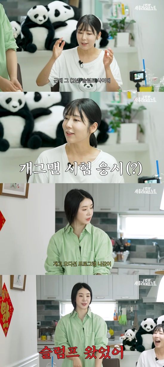 사유리는 "근데 그 슬럼프 사이에 개그맨 시험을 봤다는 소문이 있던데?"라고 물었고, 차오루는 "아니, 슬럼프 오기 전에 개그맨 오디션 프로그램을 나갔다. 그거 나가고 나서 슬럼프 왔었다"고 털어놔 웃음을 줬다.
