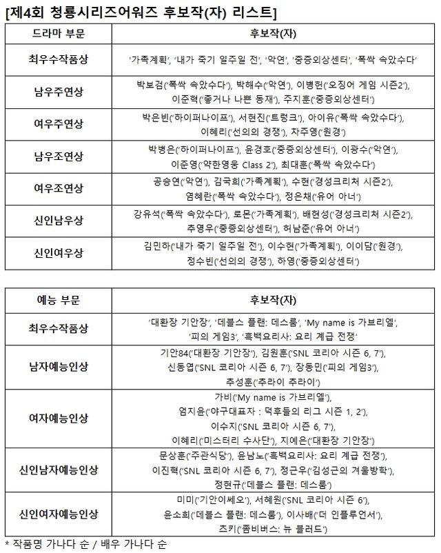 한편, 제4회 청룡시리즈어워즈는 7월 18일(금) 인천 파라다이스시티에서 진행되며, KBS 2TV를 통해 생중계된다.