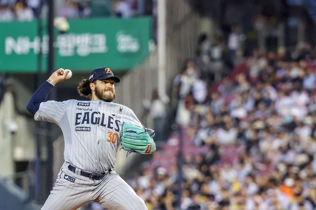 지난달 28일 오후 서울 송파구 잠실야구장에서 열린 프로야구 '2025 신한 SOL뱅크 KBO 리그' 한화 이글스와 LG 트윈스의 경기에서 5회말 한화 선발 폰세가 역투하고 있다. / 뉴스1