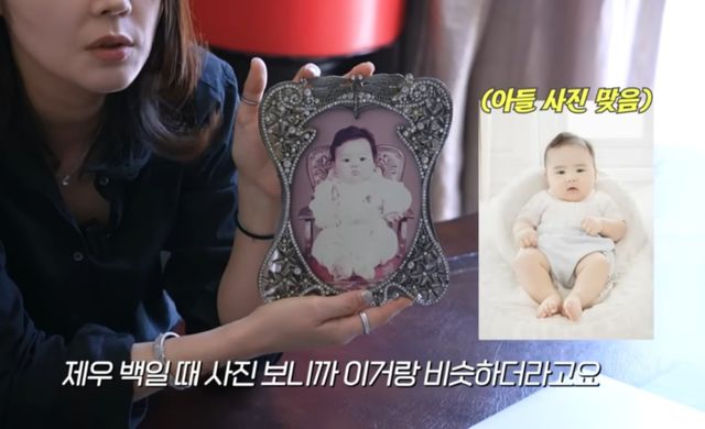 "연제우 같죠?"라며 아들과 똑 닮았음을 인정한 한가인은 "제우 백일 때 사진이 이거랑 비슷하더라"라고 덧붙였다. 옆에는 어린 시절 연정훈의 사진이 나란히 자리했다.
