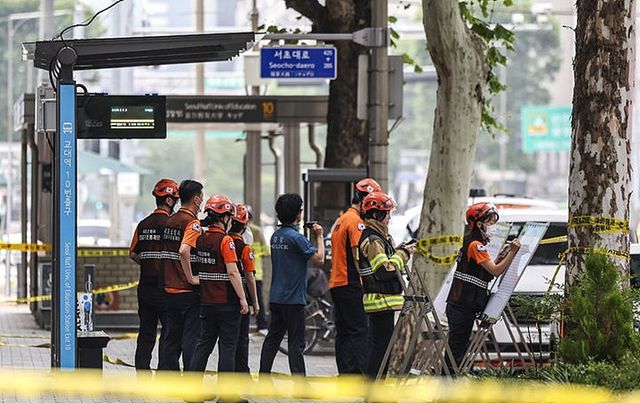 경찰은 인명사고를 방지하기 위해 교대역 출구를 통제하고 일대를 사람과 차량 통행이 없는 ‘진공 상태’로 만들고 있다.