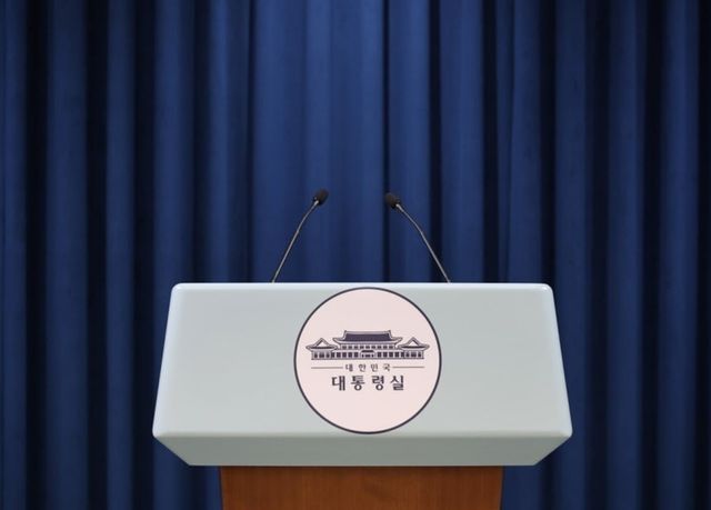 대통령실 브리핑룸의 연단. / 연합뉴스