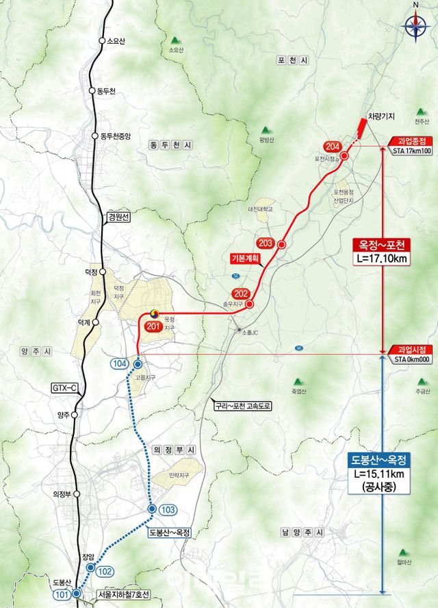 국가 균형발전 프로젝트의 하나로 추진하는 옥정~포천 광역철도 사업은 서울지하철 7호선 연장사업인 도봉산~옥정 광역철도 사업의 종점인 양주시 고읍지구에서 옥정지구를 거쳐 포천시 군내면까지 총 16.9㎞를 연장하는 지하철 건설사업이다.
