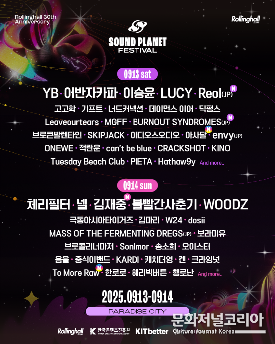 한편 ‘사운드플래닛페스티벌2025’는 오는 9월 13일 토요일부터 14일 일요일까지 인천 파라다이스시티(PARADISE CITY)에서 양일간 펼쳐지며 예매는 멜론티켓을 통해 가능하며 1일권은 121,000원, 2일권은 198,000원이다. 페스티벌에 대한 자세한 정보와 프로그램들은 공식 홈페이지와 SNS 채널을 통해 확인 가능하다.