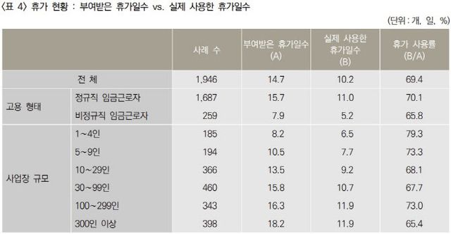 [세종=이데일리 서대웅 기자] 상시근로자가 5인 미만인 사업장에 근로기준법상 연차유급휴가를 적용하지 않는 현 제도는 헌법상 평등권 침해 소지가 있다는 국책 연구기관 지적이 나왔다.