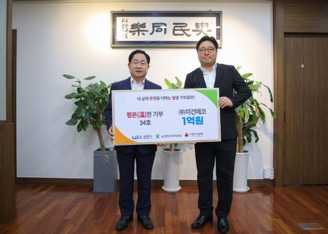 [와이뉴스] 남양주시는 27일 ㈜미건에코에서 남양주시복지재단의 고액 기부 프로그램 ‘평온(溫)한 기부’ 34호에 가입하며, 총 1억 원의 후원을 약정했다고 밝혔다.