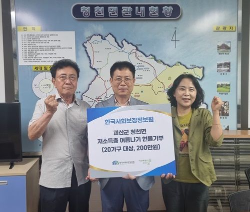 한국사회보장정보원이 26일 1사 1촌 결연 지역인 충청북도 괴산군 청천면을 방문해 ‘여름나기 현물 후원 전달식’을 진행했다고 밝혔다.