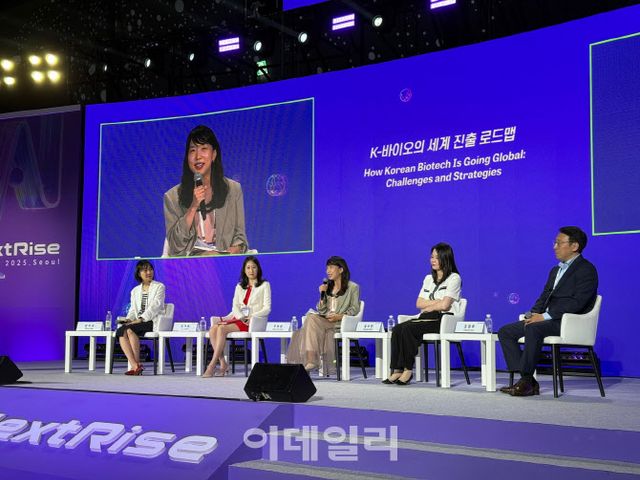 27일 서울 강남구 코엑스에서 열린 스타트업 전시회 ‘넥스트라이즈 2025’ 행사에서 바이오 벤처캐피탈 투자자들이 모여 K-바이오의 세계진출 로드맵에 대해 담론을 나눴다. 강지수 BNH인베스트먼트 전무, 심수민 파트너스인베스트먼트 상무, 조현무 프리미어파트너스 이사, 조아련 존슨앤드존슨 이사, 정회량 로슈 디렉터가 나섰다.