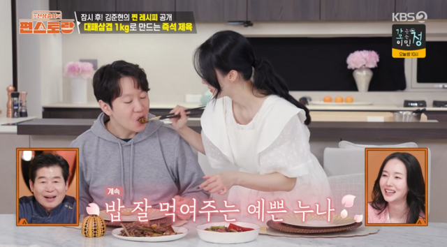 이날 이정현은 직접 물김치를 만들고, 삽겹살을 고사리에 싼 요리를 만들었다. 남편에게 직접 먹여주는 다정함에 스튜디오에서 패널들이 “계속 먹여준다”며 놀라워했고, 이정현은 “처음 알았다. 내가 먹여주는구나”라며 쑥쓰러워 했다.