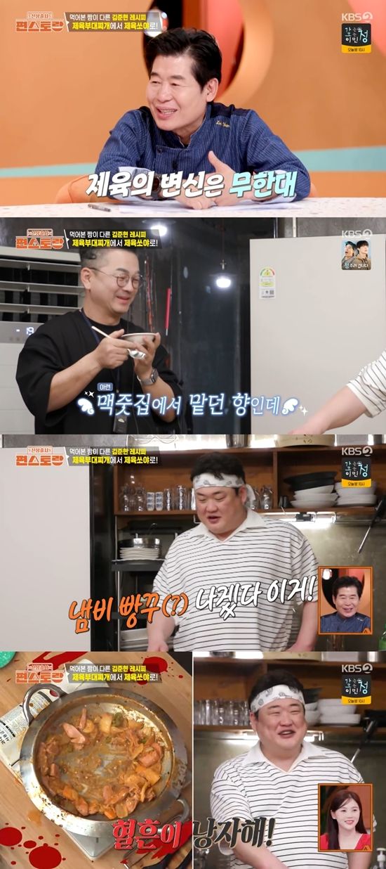 이연복은 "진짜 제육볶음 하나로 어디까지 해 먹냐"라며 김준현의 요리 내공에 놀라움을 표현했다. 맛을 본 제작진은 "맥줏집에서 맡던 향이다"라며 감탄했다.