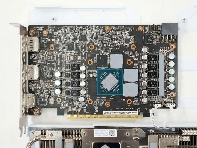 그래픽카드 후면에는 기판 휨을 방지하고 쿨링 성능에 도움을 주는 메탈 백플레이트가 장착됐다. 백플레이트에는 프리미엄 서멀 패드가 적용되어 열 방출을 돕는다. 여기에 화이트 테마에 맞춘 스틸레전드 디자인이 맞물려 심미적인 부분까지 챙겼다.
