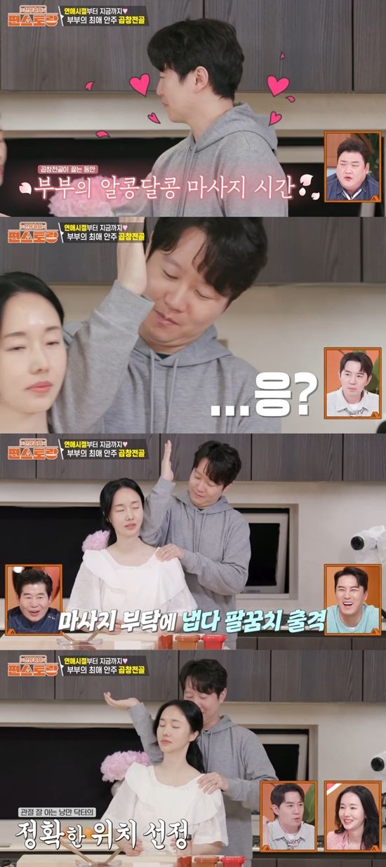 이 모습을 지켜본 붐은 "근육을 정확히 알고 있을 거다. 정확히 눌러 주는 거다. 부부 마사지는 서로 해주면 좋다"라며 의사인 이정현의 남편을 두둔했다.