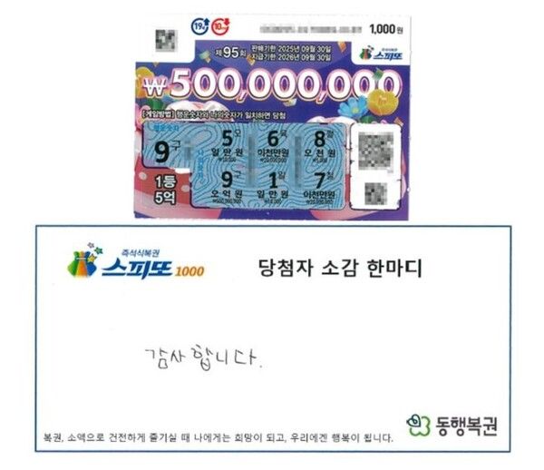 A씨는 "감사합니다"라는 짧은 당첨 소감을 남겼다.