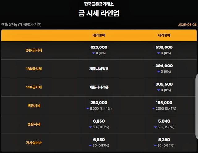 순금(24K) : 매입가 62만 4000원 / 매도가 53만 5000원