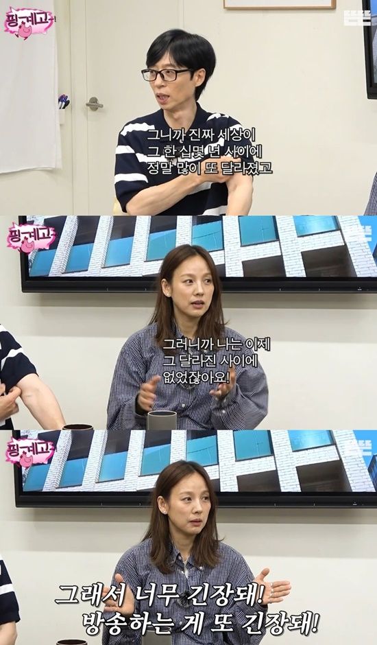 이어 "진짜 세상이 십몇 년 사이에 정말 많이 달라졌다"고 놀랐고, 이효리도 "그 달라진 사이에 나는 (방송계에) 없었지 않나. 그래서 방송하는 게 또 너무 긴장된다"고 속마음을 고백하며 양세찬에게 '요즘 방송에서 하면 안 되는 것들'에 대해 정리해서 전해달라고 너스레를 떨어 웃음을 안겼다.