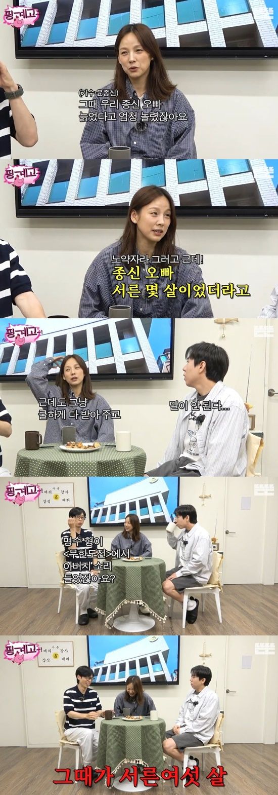 그 때의 윤종신과 현재 비슷한 나이 또래인 양세찬도 놀라움을 금치 못했고, 유재석도 "(박)명수 형이 '무한도전'에서 '아버지' 소리를 들었지 않나. 그 때가 형이 서른여섯 살이었을 때다"라며 멋쩍게 웃었다.