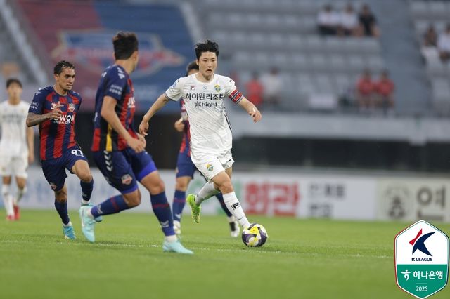 강원은 다시 앞서나갈 수 있는 기회가 골대에 막혔다. 후반 31분 모재현이 페널티 오른쪽 지역으로 들어간 뒤 컷백 패스를 시도했는데, 패스가 수비 맞고 골대를 때리고 나오면서 득점으로 이어지지 않았다.