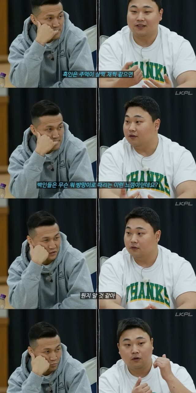 백인들 주먹은 방망이로 후리는 느낌이라고 함