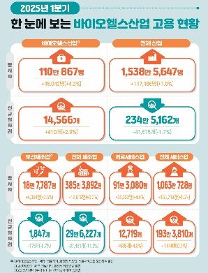 전체 산업 종사자 증가율이 1.0%에 그친 반면, 바이오헬스산업은 4.3%의 견조한 성장세를 나타냈다.
