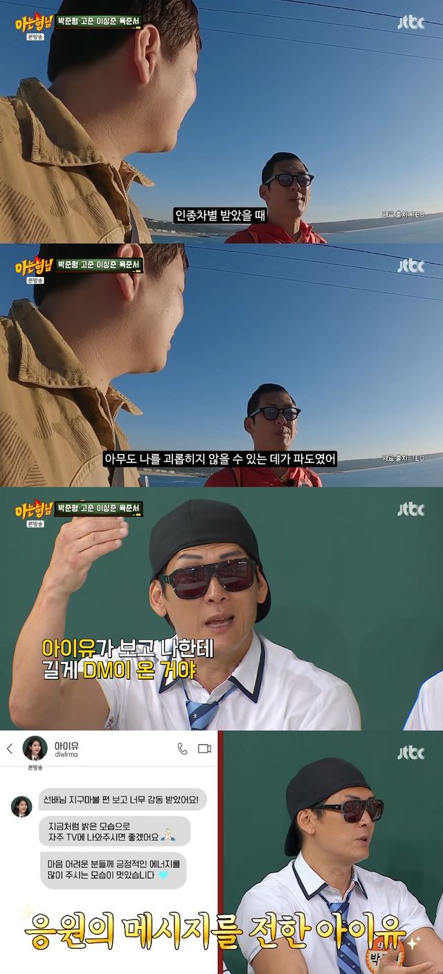 박준형은 "그걸 보고 아이유가 길게 DM이 왔다. 너무 감동 받았고 계속 TV에 나와주셨으면 좋겠다고, 긍정적인 에너지를 어려운 분들한테 주는 게 좋다고. 그런 거 보면 난 너무 좋다"며 아이유를 향한 애정을 드러냈다.