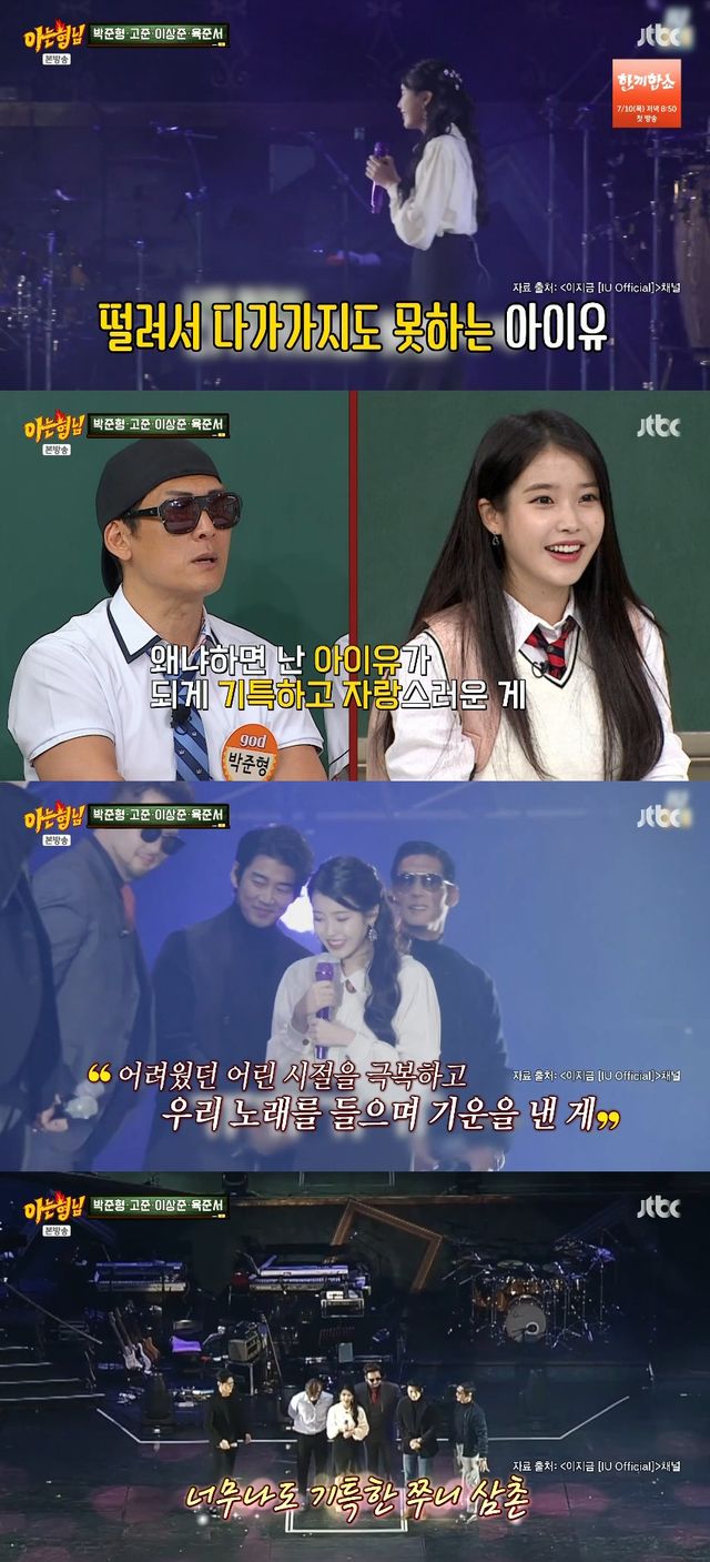 아이유는 박준형이 출연한 방송 프로그램을 보고 따로 연락을 준 적도 있다고. 박준형은 "저번에 '지구마불 세계여행'이라는 프로그램에 나왔다"며 해당 에피소드를 공개했다.