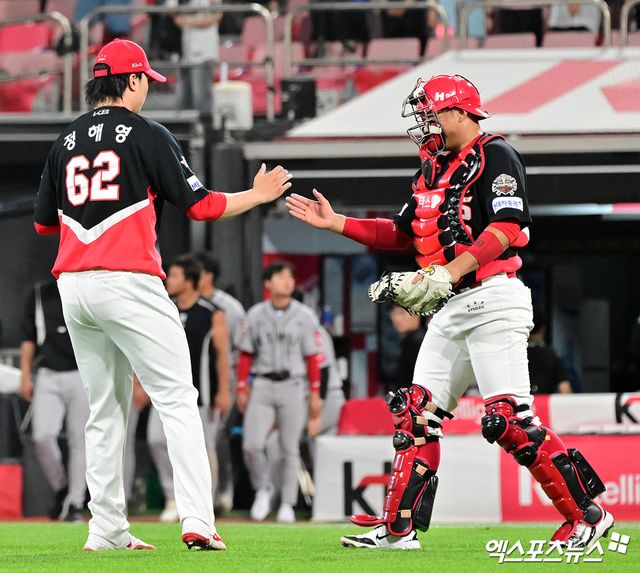 사령탑이 가장 먼저 언급한 건 투수들의 활약이었다. 이 감독은 "마운드에서는 성영탁과 필승조가 접전에서 최소 실점으로 잘 막아줬다"며 "성영탁의 프로 데뷔 첫 승과 전상현의 100홀드, 정해영의 5년 연속 20세이브 달성을 축하한다"고 말했다.