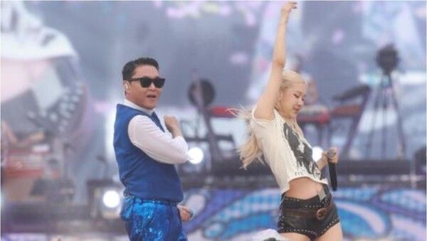 싸이는 "제가 가수이기도 하지만 작곡자이기도 하다. 그러다 보니 가끔 다른 가수들의 노래를 들을 때 '저 노래를 내가 불렀다면 어떨까' 싶은 곡들이 5년에 한 곡 정도 있다. 이 노래도 그런 노래"라고 말해 기대감을 높였다. 싸이의 말이 끝남과 동시에 현장에는 블랙핑크 로제의 '아파트' 전주가 울려 퍼졌고, 놀란 관객들 앞으로 로제가 깜짝 등장하며 뜨거운 환호를 받았다.