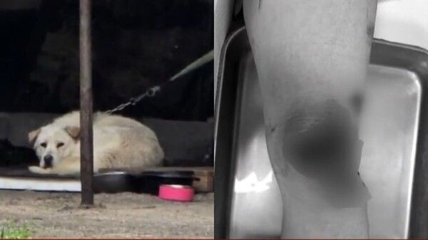 A씨와 사장이 개를 겨우 떼어냈지만, 이미 B씨 무릎에서는 살점이 떨어져 나간 상태였다.