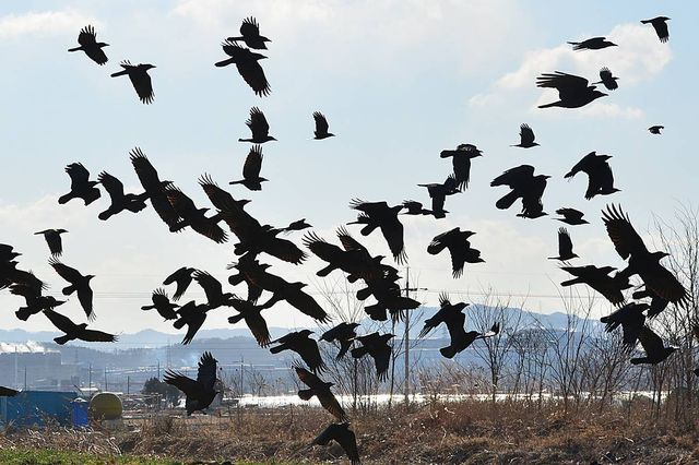 까마귀 떼가 날아오르고 있다 / 뉴스1