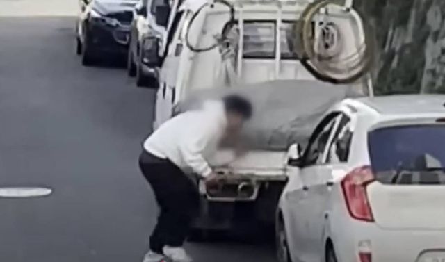 까마귀 공격에 몸을 숨기는 남성. 기사 이해를 돕기 위한 사진 / 유튜브 'KBS울산'