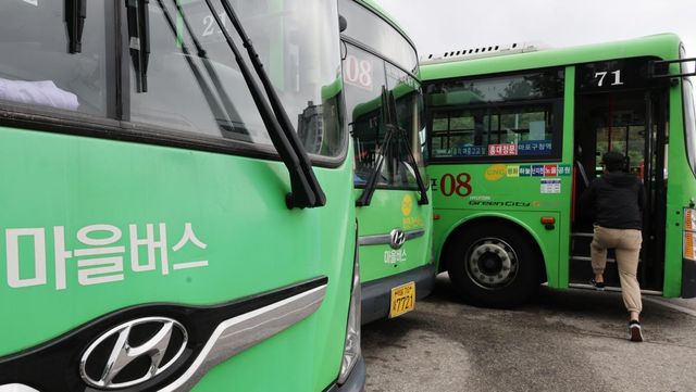 서울 은평공영차고지에 마을버스가 대기해 있다. / 연합뉴스