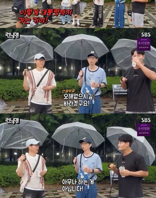 김종국은 "잘하면 장관님 나오시겠다"며 이를 축하했고, 송지효는 "오빠 잘 부탁드린다"며 김칫국을 마셔 웃음을 자아낸다.
