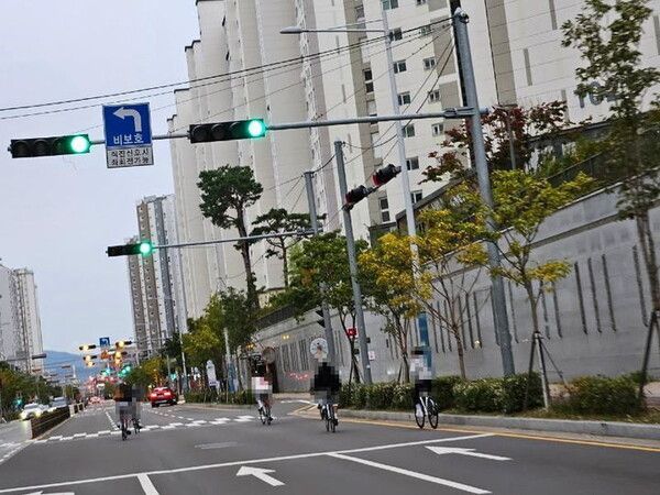 공개된 사진 속에선 다수의 청소년이 도로 한 가운데서 자전거를 타고 질주하고 있다.