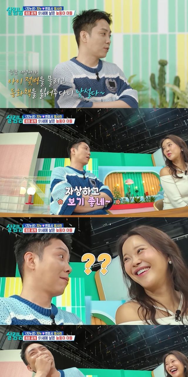 51세에 얻은 늦둥이 아들에게 다정하게 동화책을 읽어주는 지누의 모습에 은지원은 "지누 형이 아이 젖병 물리고 책 읽어주니 낯설다"고 이야기했다.