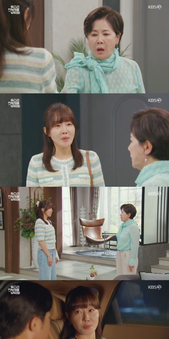 박정수는 "그래서요. 내가 치매 환자니까 이제는 만만한 할망구로 보여요? 이제 초기고 나 아직 멀쩡해요. 그래서 멀쩡할 때 잘 정리하고 싶어서 그 댁 반대하는 거야. 어쨌거나 내 약 갖다주러 일부러 여기까지 와줘서 고마워요. 한 가지 부탁해도 될까? 이 약에 관해 우리 한 회장이랑 우리 애들한테는 말하지 말아 줘요. 내가 적당한 때 내 입으로 말할 테니까"라며 쏘아붙였다.