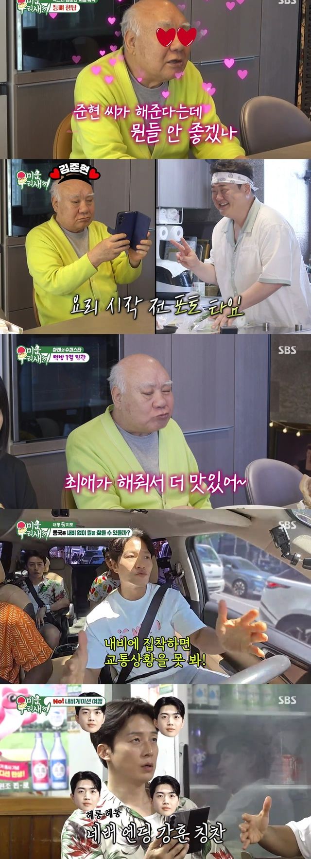 ‘맛있는 녀석들’의 애청자인 정영주 父의 ‘최애’인 개그맨 김준현이 영주 父와 만났다. 홈쇼핑을 시청하다 뜻밖에 집에 찾아온 김준현을 마주친 영주 父는 소파에서 벌떡 일어나며 반가움을 드러냈다.