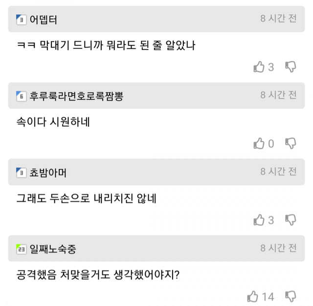 여자는 2대 치고 남자는 1대 쳤으니 봐준것
