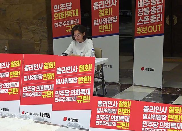나 의원은 지난 27일부터 김민석 국무총리 후보자 지명 철회와 국회 법제사법위원장직 반환을 요구하며 국회에서 철야농성을 벌이고 있다. 나 의원은 국회 로텐더홀에 텐트를 치고 휴대용 선풍기를 틀어놓고 독서하는 모습을 인스타그램에 올렸다.