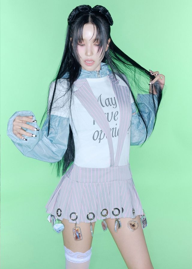 공개된 콘텐츠 속 아홉 멤버는 뮤트한 색채가 다채롭게 입혀진 콘텐츠 속 푸른색 렌즈, 알록달록 컬러 마스카라, 롱 네일 아트 같은 과감한 스타일링과 포토제닉 포즈로 시선을 붙잡았다. 압도적 비주얼은 물론 키치한 느낌을 뽐내며 컴백 기대감을 수직 상승시킨다.