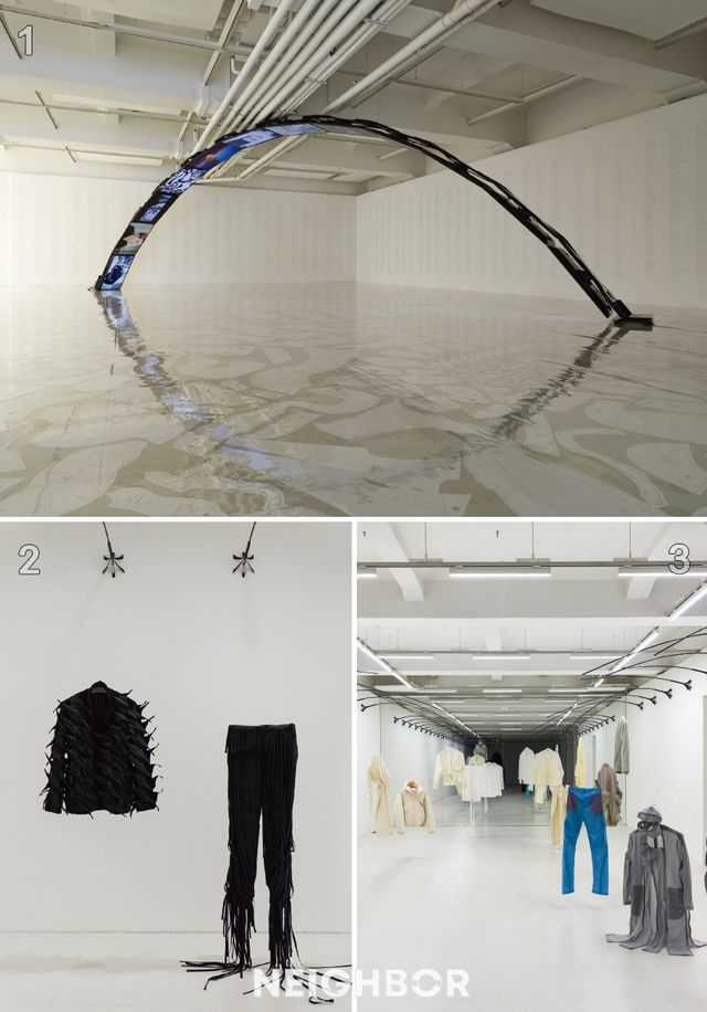 대도시 서울. 사회적, 정치적, 문화적으로 급변하는 도시를 해석하는 방법은 무수히 많을 것이다. 7월 20일까지 열리는 일민미술관의 전시 <시대복장 Iconclash: Contemporary Outfits>은 패션이라는 렌즈를 통해 서울을 들여다보는 신선한 시도다. 이번 전시에는 서울을 기반으로 활동하는 세 패션 스튜디오가 함께했다. 주인공은 2021년 설립된 지용킴, 2018년 출발한 포스트아카이브팩션(파프), 2015년 설립된 HYEIN SEO(혜인서)다. 이들은 대담한 행보로 국내외 패션계에 존재감을 각인하며 지지를 얻은 브랜드다. 전시를 기획한 이지언 큐레이터는 ‘미술계 안팎의 문화적 지형이 상이한 현시점이, 패션을 미술관 전시라는 방식으로 풀어내기에 시의적절하다’고 언급했다. 큐레이터의 설명대로 세 팀의 발산 방식은 서로 다르다. “1층의 지용킴이 자연을 통제하지 않는 방식에서 미를 발견한다면, 2층의 파프는 시스템을 구축한 뒤 시간을 두고 업그레이드한다. 3층의 혜인서는 산재된 서사의 편린에서 얻은 영감을 컬렉션으로 연결한다.”