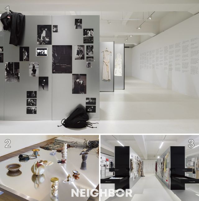 세 스튜디오에게 전시장은 그리 낯설지 않다. 지용킴은 시즌마다 전시를 통해 컬렉션을 공개하고, 포스트아카이브팩션 역시 2021년 아라리오갤러리의 <파이널 컷> 등 크고 작은 전시를 열었으며, 혜인서도 국립현대미술관 레지던시 기획전에 참여한 이력이 있다. <시대복장>의 전시 서문처럼 ‘미술관의 전시실이 쇼룸처럼’ ‘스튜디오의 쇼룸이 전시실처럼’ 닮아가는 시대, 패션 디자이너에게 전시의 문법이란 결코 생경하거나 새로운 것이 아니다. 하지만 광화문의 옛 신문사 건물에 자리한 일민미술관의 상징성, 그리고 동시대 한국 패션 브랜드의 그룹전이라는 점에서 남다르다. 3개 층의 전시실은 개별적으로 구획된 동시에 상호작용한다. 1층부터 3층까지 계단을 오르내리는 동안 패션 브랜드를 잘 알든 그렇지 않든 관람객은 자연스레 현대 서울의 패션 지형을 가늠하고, 이 맥락 속에서 상이한 질감을 느낄 수밖에 없다. 그 감촉을 공유하는 순간 ‘시대의 복장’에 대한 논의를 시작할 수 있을 것이다.